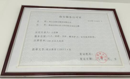 鳳臺保安服務(wù)有限公司成立于2007年,是經(jīng)鳳臺縣公安局行政許可的經(jīng)營企業(yè),注冊資金1000萬元,具有國企背景(安徽州來控股有限公司),更是一家朝氣蓬勃的年輕企業(yè)。公司主營勞務(wù)派遣、保安服務(wù)、武裝押運等。 >>了解更多